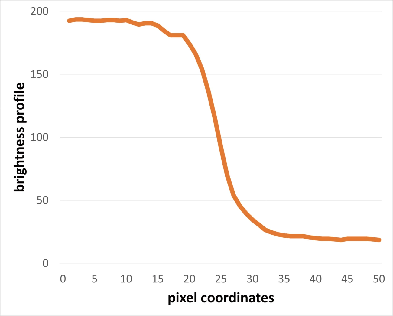 白と黒の明るさのプロファイルを比較しました(ガラススケールの赤丸箇所)