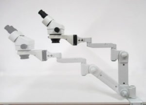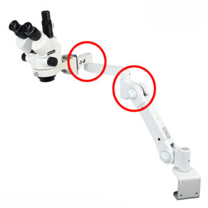 従来の顕微鏡アームは各関節にロックが付いていました。