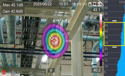 ●圧縮空気の漏れと部分放電を検出するための超音波位置特定。
