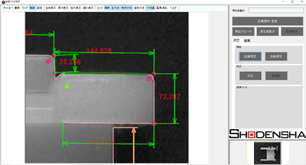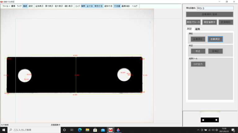 品種登録した箇所を自動寸法測定します。