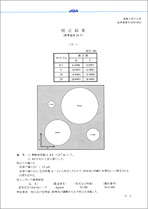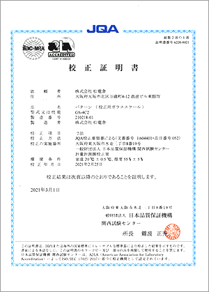 校正用ガラススケールには校正証明書を付属させることも可能です。(有償)