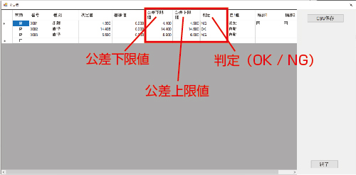公差下限、公差上限を設定することでOK/NG判定ができます。