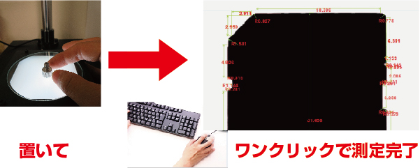 まずは対象物を置き、ワンクリックするだけで寸法測定候補を自動で仮測定。