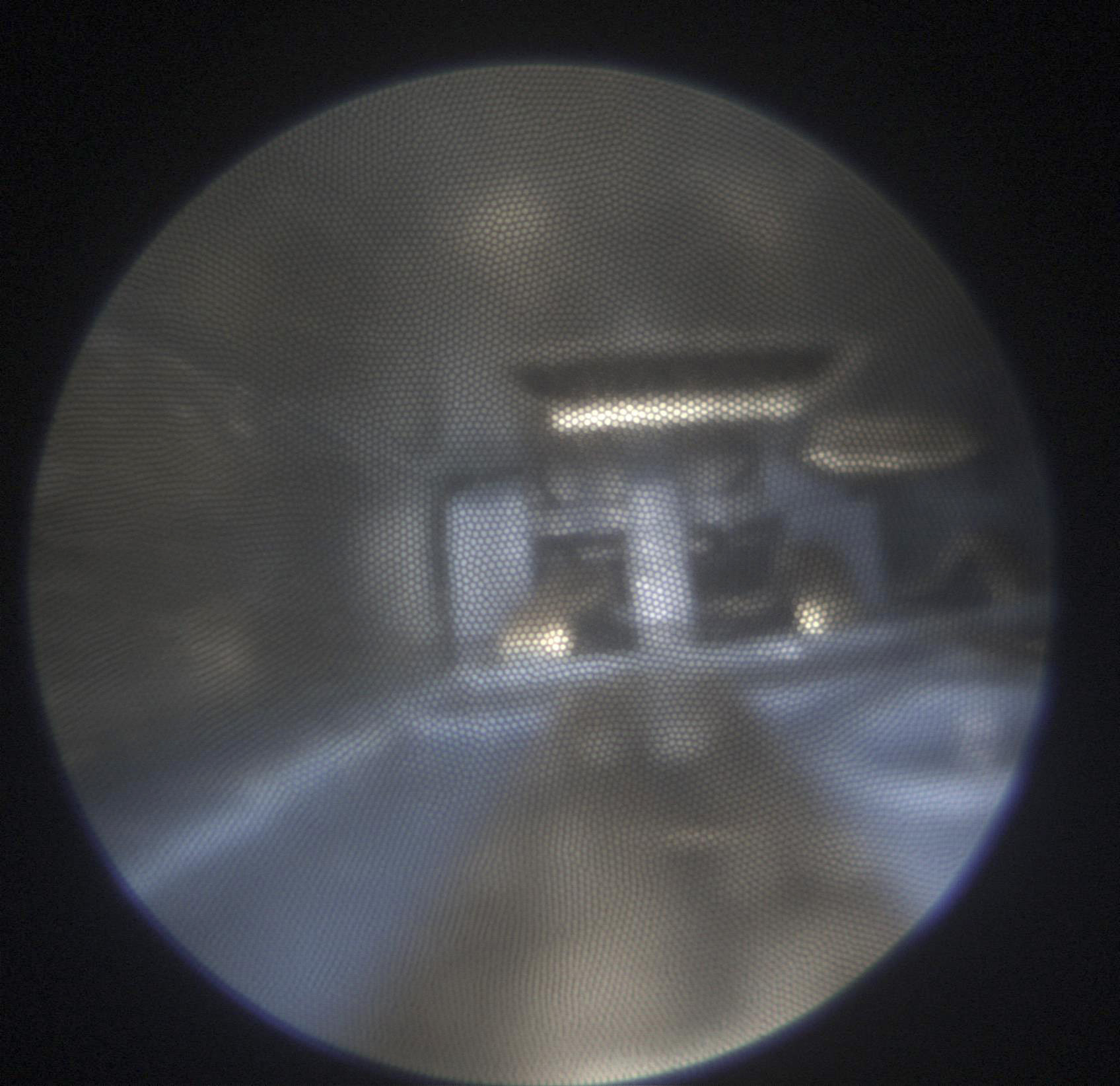 ファイバースコープでの見え方はハニカム構造が映り込みます。