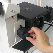 ステージにおいた検体を下方から観察できるため厚さのある検体を観察する場合に便利。