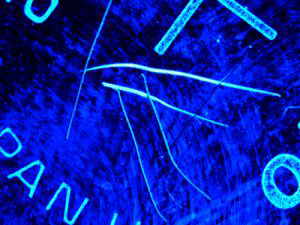 対象物にもよりますが、青色LEDを使えば傷が鮮明に見えることがあります。