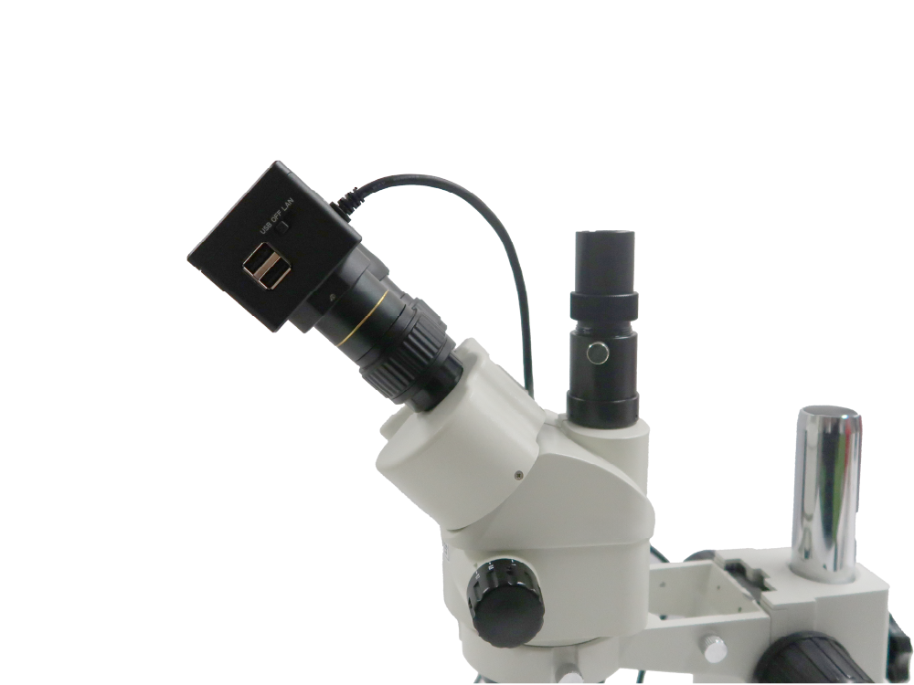 顕微鏡の三眼部または接眼部に差し込むだけです。