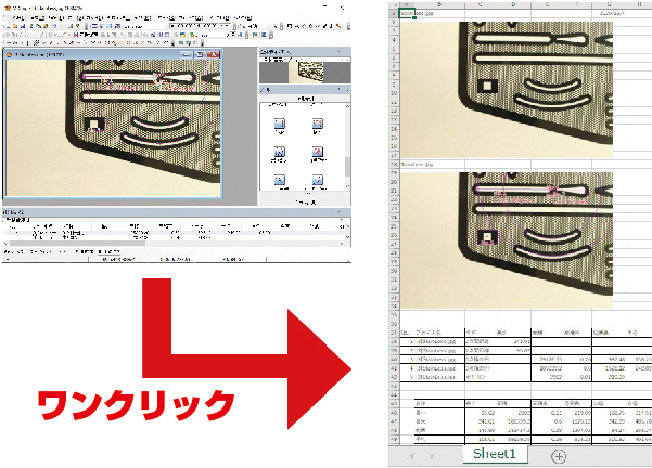 Excel出力ボタンをワンクリックでExcelに計測データを転送します。