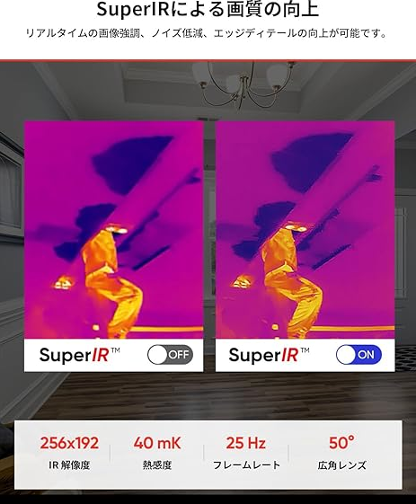 | 赤外線解像度 | 256 × 192 (49,152 ピクセル)、スーパーIR対応 |