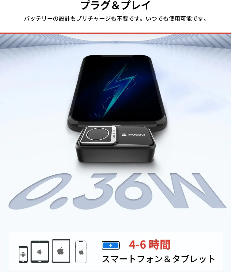 | ソフトウェア互換性 | iOS/Android用HIKMICRO Viewerアプリ、Windows用HIKMICRO Analyzerソフトウェア(アプリストアからダウンロード) |