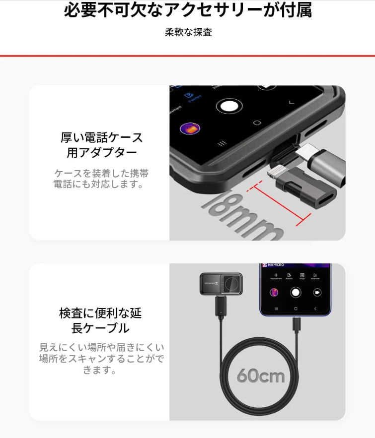 また見えにくい場所や届きにくい場所の検査やスキャンを容易にする延長コードも付属。