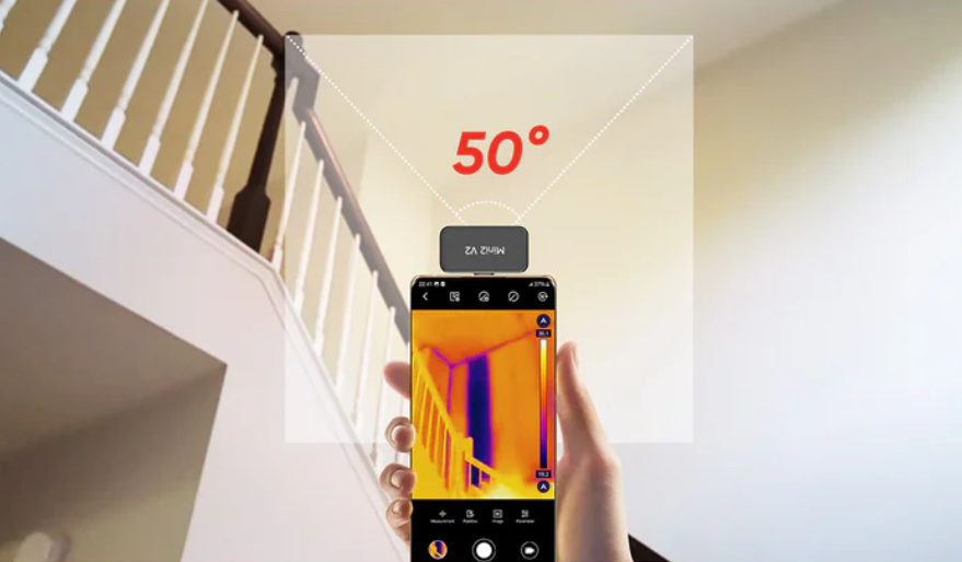 50°の広角レンズを搭載しており、壁、床、外壁をスキャンし、水漏れ、断熱問題、空気の浸入などの問題を発見に役たちます。