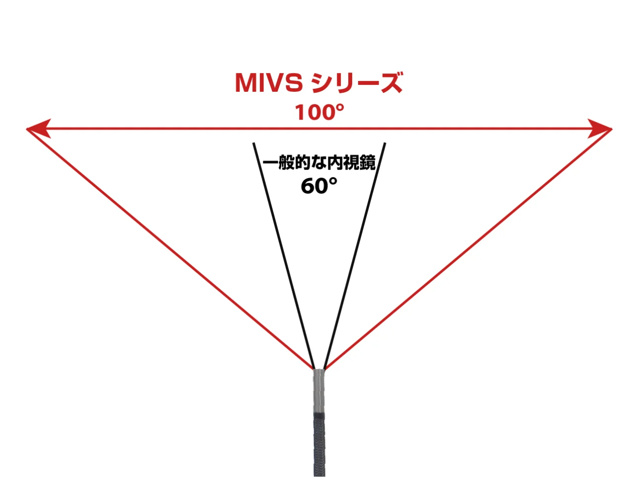 工業用内視鏡の一般的な視野角60°と比べて広い視界を確保し、