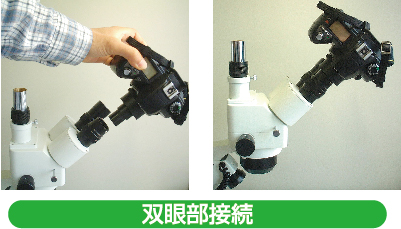 弊社の顕微鏡の場合は3眼部のみに取付可能です。