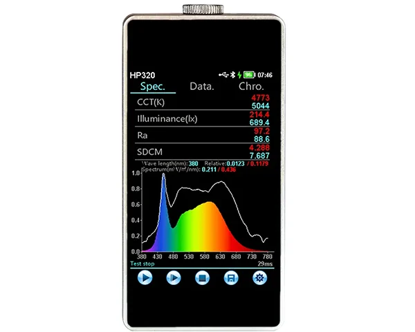 分光色彩照度計とは、光を分光して照度・色度・色温度・演色性などを高精度に測定できる測定器です。LED照明やディスプレイ、光源評価に用いられ、人の視覚特性に近い精度で光の品質を数値化できます。照明設計、品質管理、研究開発分野で活用され、照明環境の最適化や規格対応に貢献します。