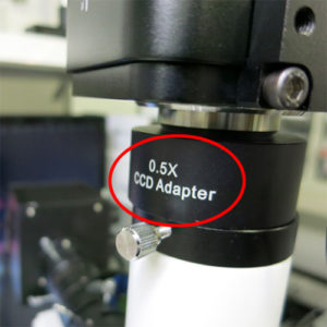 顕微鏡のカメラポート(Cマウント ×0.5)に付けると