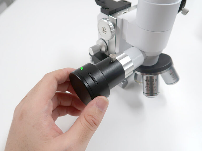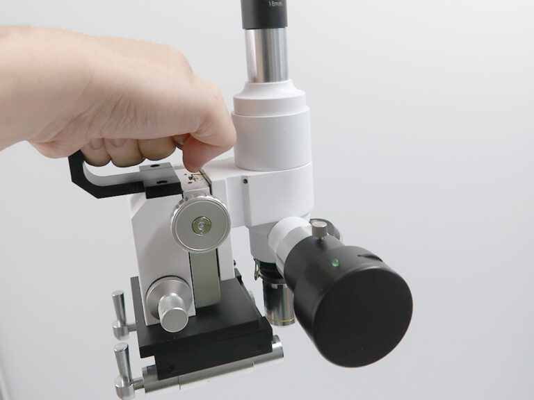 顕微鏡本体は2.2kgと片手でも楽に持てる重量です。