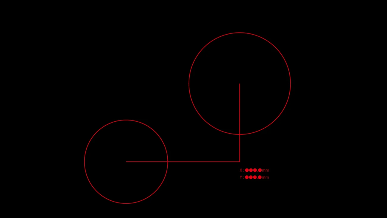 標準機能では二円中心点間距離は最短距離を測定しますが