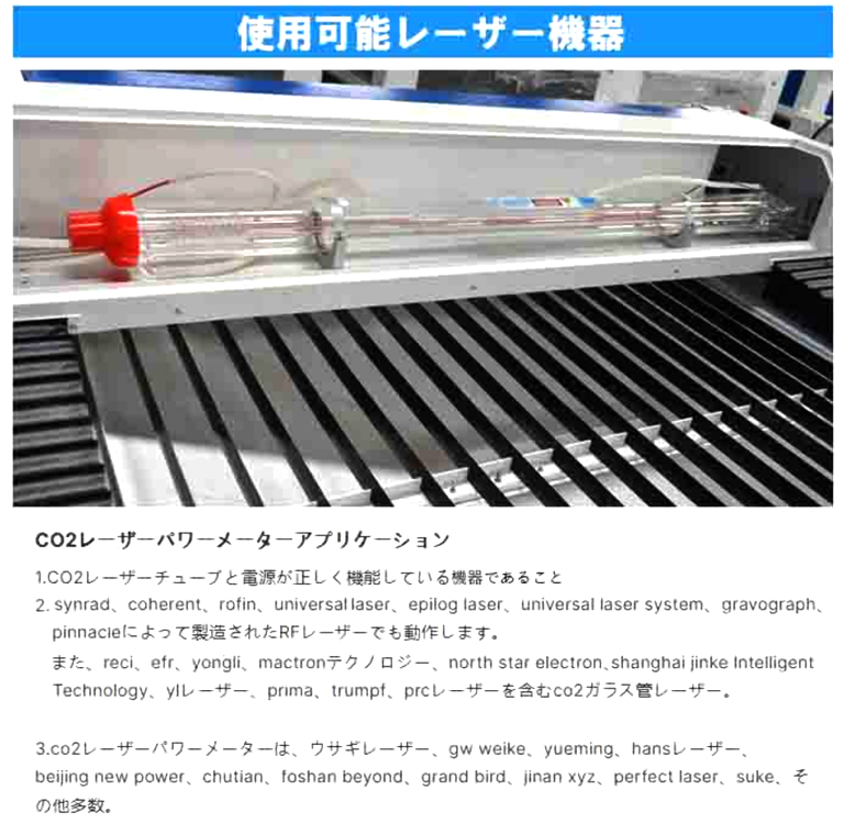 下記のようなMAX 200Wまでの高出力CO2レーザー機器の測定ができます。