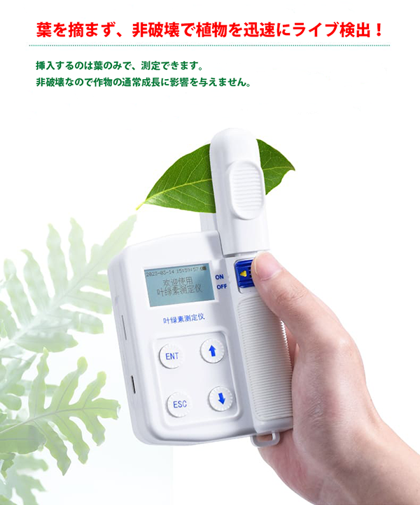 | 測定範囲 | 葉緑素/0.0-99.9SPAD 葉温度/-10~99.9℃ 窒素含有量/0.0~99.99mg/g 葉湿度/0.0~99.9RH% |