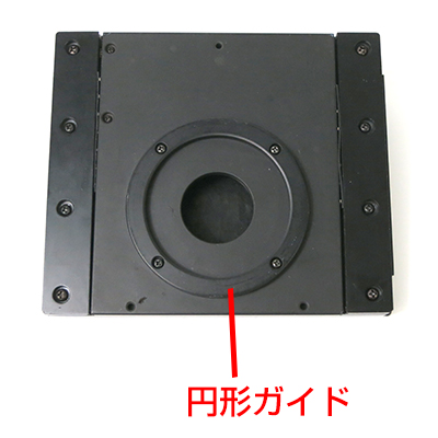 お手持ちの顕微鏡やマイクロスコープの小型ベース部の円板を取り外し、その部分(φ95mm)にはめ込みます。