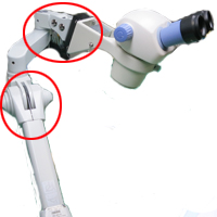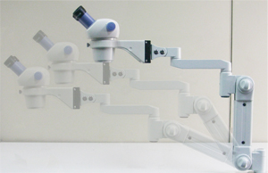 従来の顕微鏡アームは各関節にロックが付いていました。