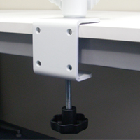クランプ(万力)で作業台のエッジ等に取り付きます。