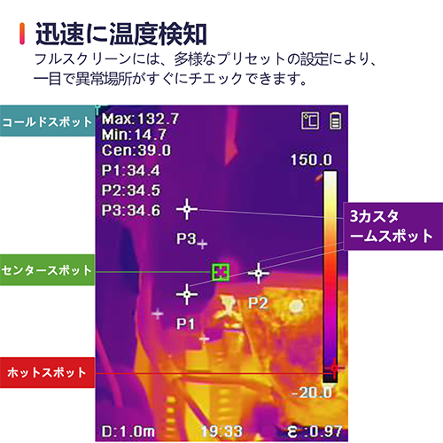 ●センタースポット、ホットスポット、コールドスポット、カスタムポイントの温度を自動的に追跡
