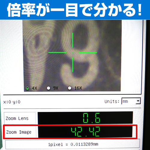 そのため、レンズの倍率を変更するだけで、校正データも自動で切り替わります。