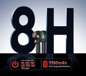 内蔵充電式バッテリーと自動電源オフ(5/10/20分)で、最大8時間まで連続使用できます。