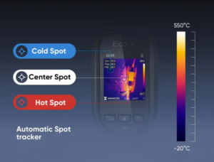 フルスクリーンをサポートし、熱画像キャプチャ内の高温・低温・平均の各スポットを自動的に追跡。