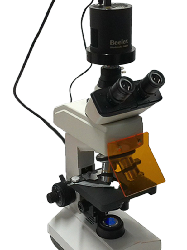 通常の生物顕微鏡として観察、蛍光顕微鏡として蛍光観察のどちらでも使えます。