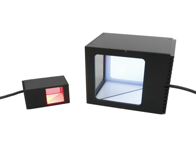 同軸照明とは、カメラの光軸と同じ方向から光を照射する照明方式です。正面から均一に光を当てるため、凹凸の少ない平坦な表面をムラなく照明できます。鏡面や光沢面でも反射の影響を抑えやすく、刻印や印字、微細パターンの検査に適しています。電子部品や半導体、金属表面の外観検査で多く使用されています。