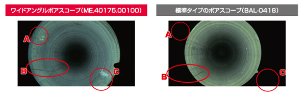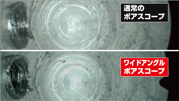 ワイドアングルボアスコープの方が広い視野を観察できるのが分かります。