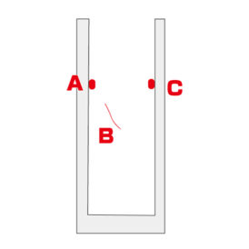 対象物の中にA、B、Cの傷があります。