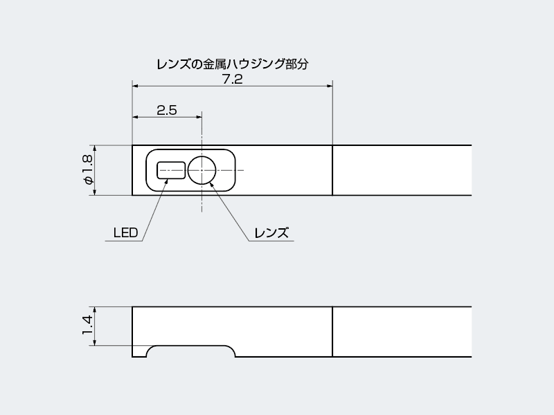 先端からカメラ(レンズ)迄の距離:2.5mm