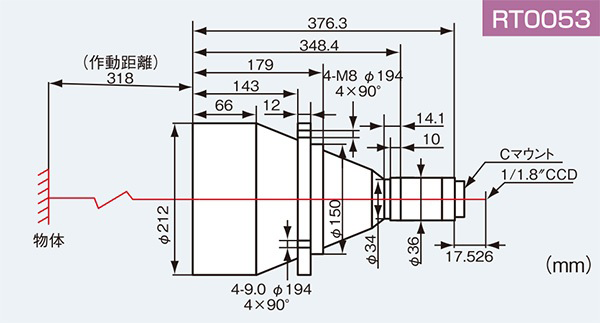 | 視野範囲 1/2インチカメラ(H×V) | 120.6mm×90.0mm |