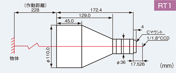 | 視野範囲 1/2インチカメラ(H×V) | 56.8mm×42.6mm |