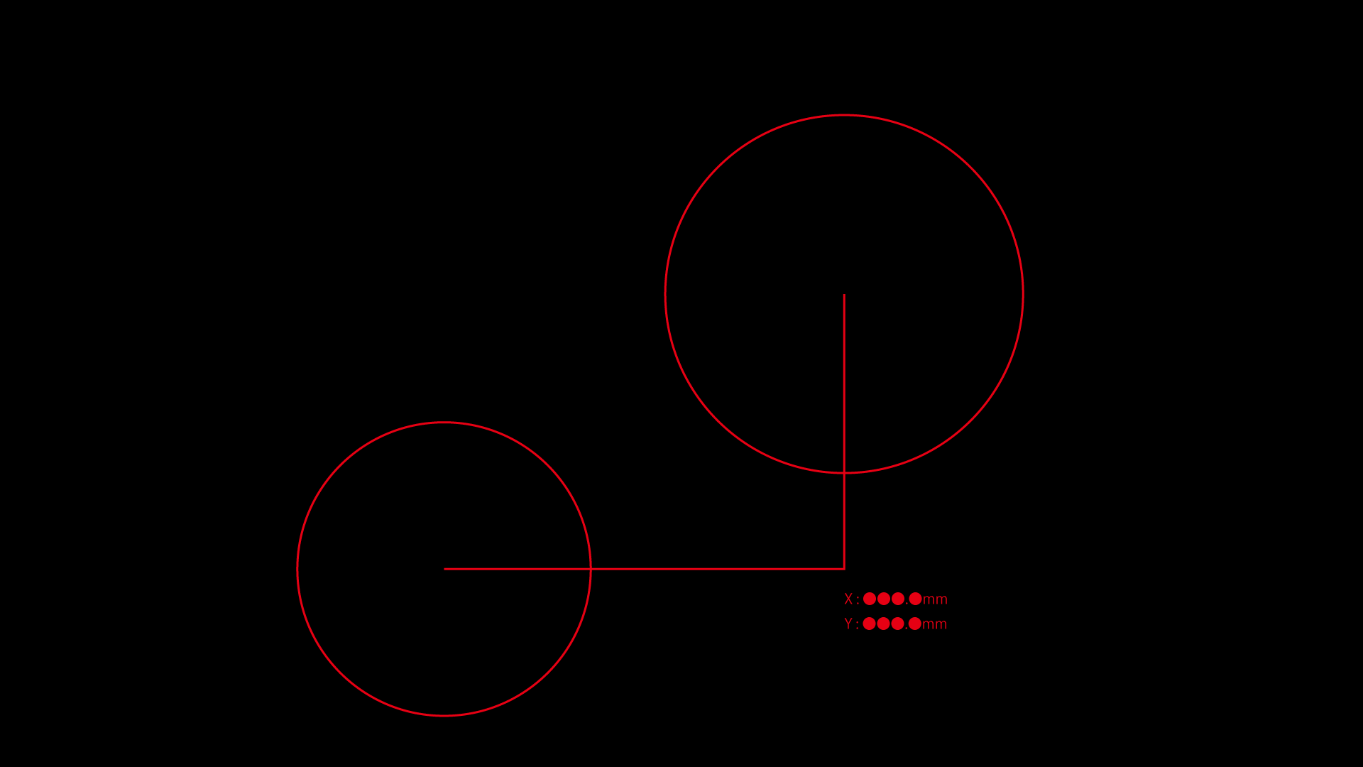 標準機能では二円中心点間距離は最短距離を測定しますが