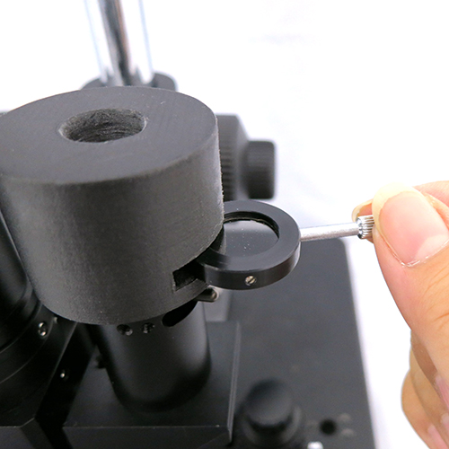 ●同軸照明部に治具を取り付け、偏光フィルターを挿入できます。