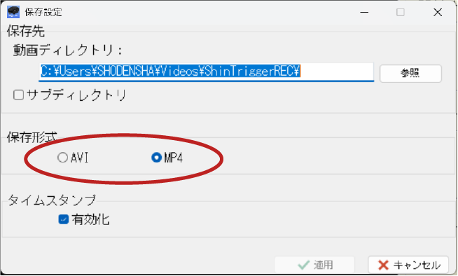タイムスタンプの焼きこみが可能です。