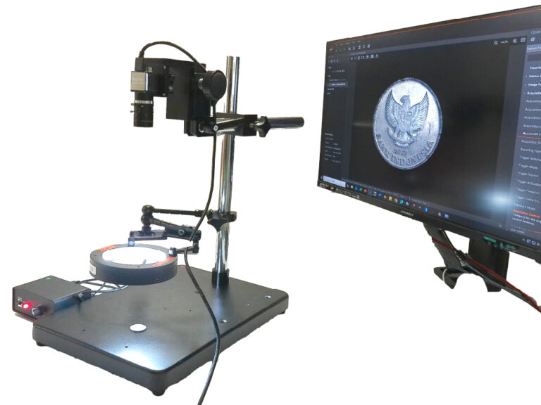 落射照明では光が映り込んでしまう対象もローアングルでは均等に照らせます。