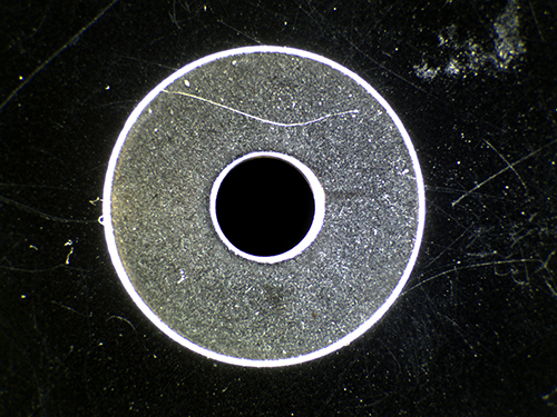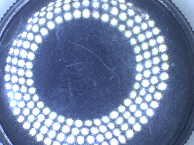 ●上方からの直接照明では光が拡散し、認識が困難なエッジやキズ、表面上の凹凸(エンボス等)のあるサンプルに低いアングル(斜め側方)から光を照射することで、陰影のコントラストを強調できます。